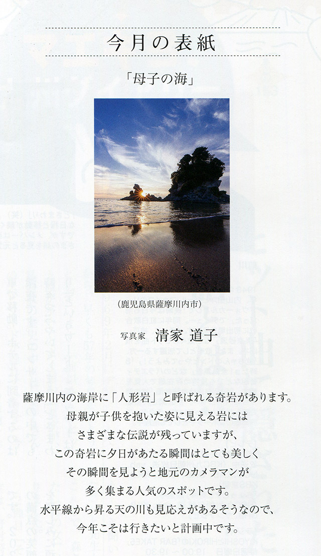 2025年12月17日 九州王国新年号表紙写真は「母子の海」 soundsendai 未分類 0 Comments 九州王国新年号表紙写真は「母子の海」 撮影場所・薩摩川内市西方海岸 撮影・清家道子氏(写真家) Tweet