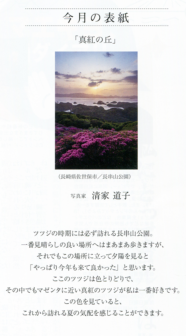2026年4月17日 九州王国5月号表紙写真は「真紅の丘」 soundsendai お知らせ, ブログ 0 Comments 九州王国5月号表紙写真は 「真紅の丘」 撮影場所・長崎県佐世保市/長串山公園 撮影・清家道子氏(写真家) Tweet