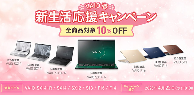 <VAIO新生活応援 キャッシュバックキャンペーン>さらに「10%Off」のダブルでお買い得!!